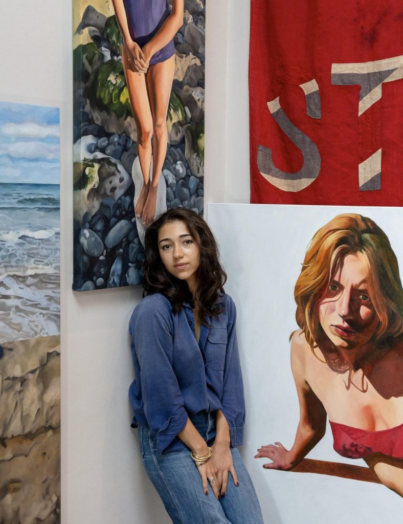 Her work is rooted in figurative painting, but the subject matter is personal rather than historical. Themes emerge not from theory, but from lived experience — particularly her experience of being a woman. In her ongoing Bathers series, Momen revisits a classical motif long entangled with eroticism and the male gaze. Initially, she didn’t read those references at all. It was only later, through research, that she realised how heavily sexualised the tradition had been. The distance is telling; she doesn’t paint women as passive or performative because she doesn’t see them that way.